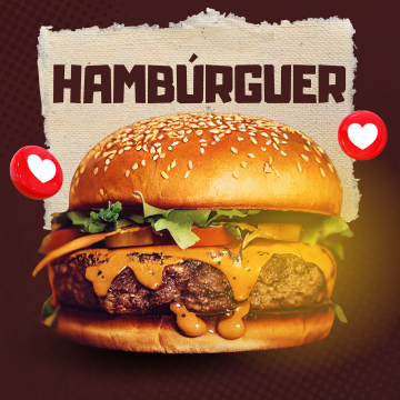 Ingredientes: Alface, tomate, batata palha, milho, hambúrguer, presunto, mussarela e maionese